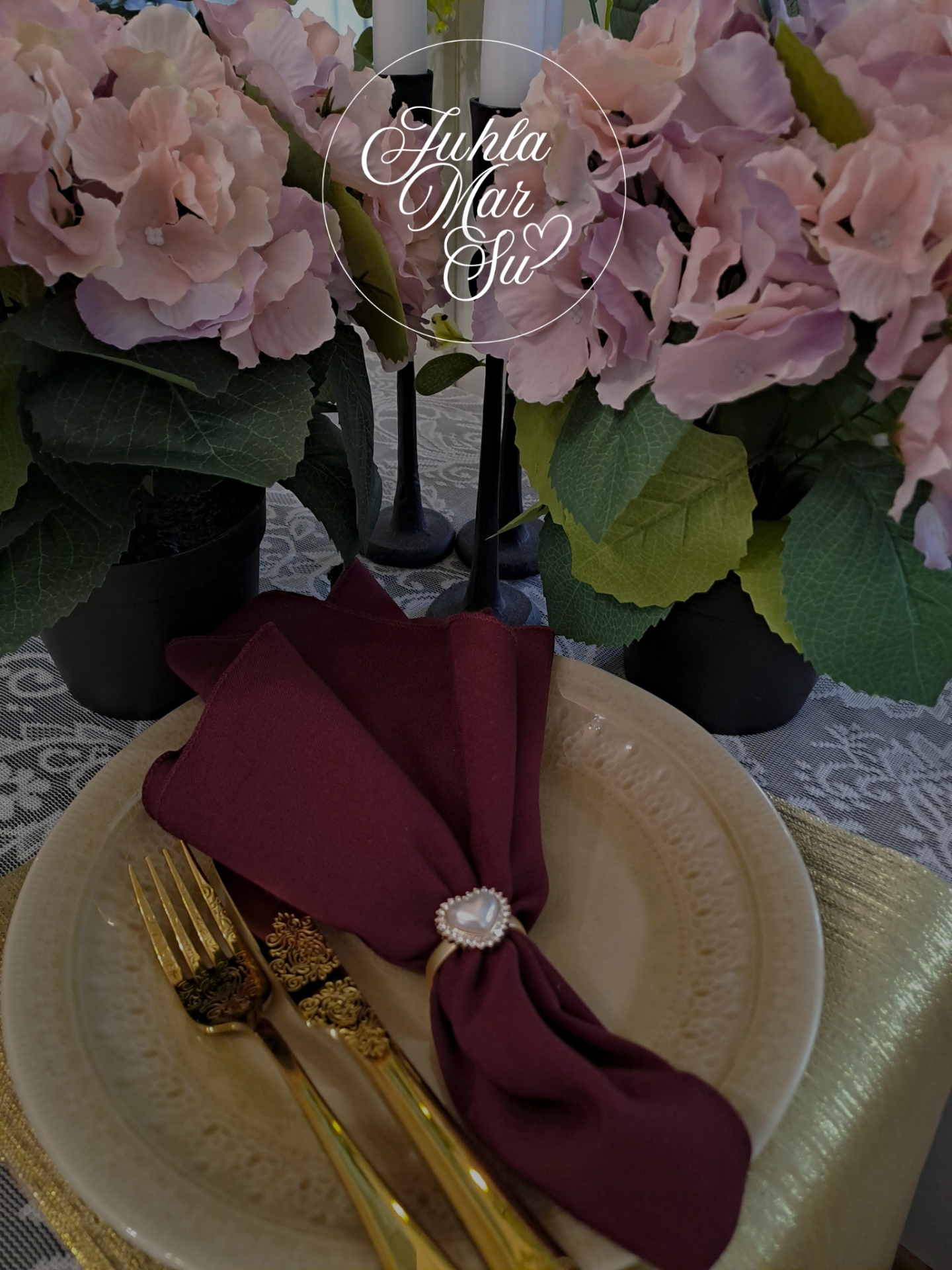 Kruunun pohjana on vanha valaisimen runko, johon kukkakoriste on tehty. Rungon takia kruunu painaa noin 4kg ilman kynttilöitä, joten se tarvitsee tukevan kiinnitysmekanismin. Kruunussa on kiinteä ripustusrengas, josta sen voi ripustaa esim. s-koukulla, kuten kuvassa, tai pidemmällä ripustuskoukulla.